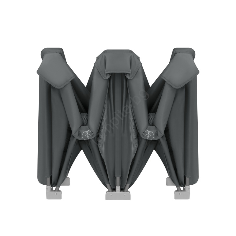• Манежът е оборудван с прост сгъваем механизъм, който позволява бързо прибиране до компактни размери без използване на инструменти.