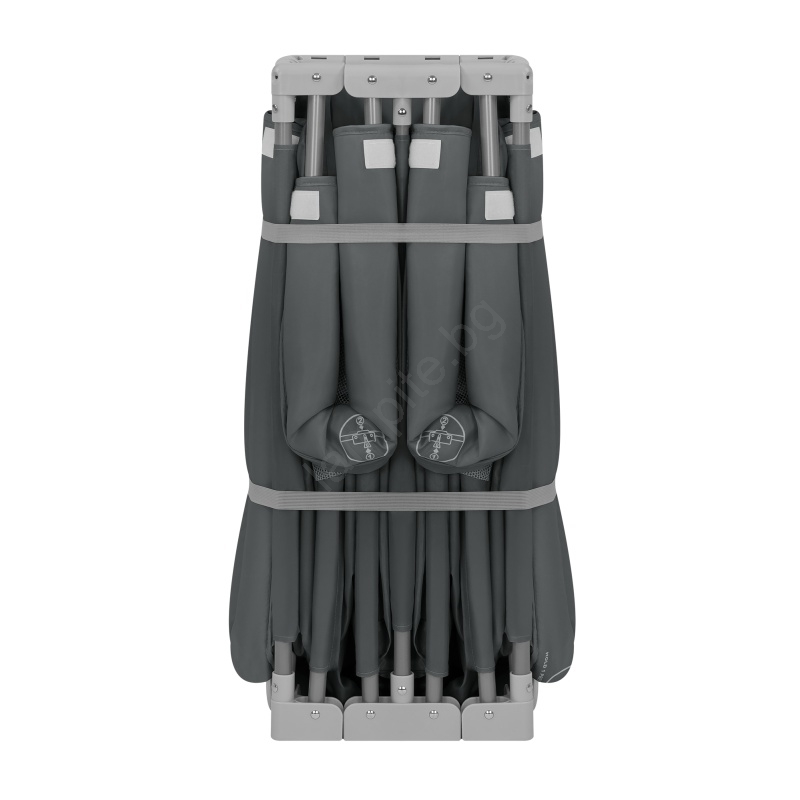 • Благодарение на компактните размери в сгънато състояние и включената транспортна чанта, манежът е идеален за пътуване, за ползване в градината или за дискретно съхранение у дома.