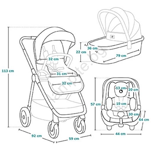 • Възможност за монтиране на столчето за кола върху рамата на количката без да събуждате детето.