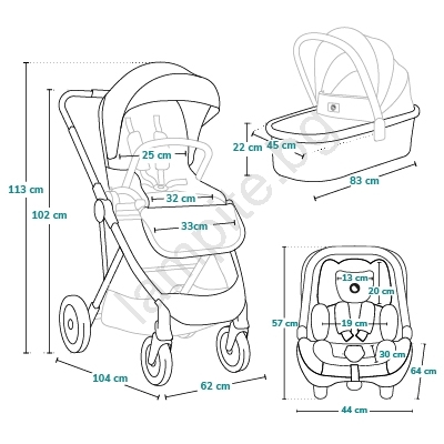 • Универсална количка 3 в 1 – кош, спортна количка и столче за кола.