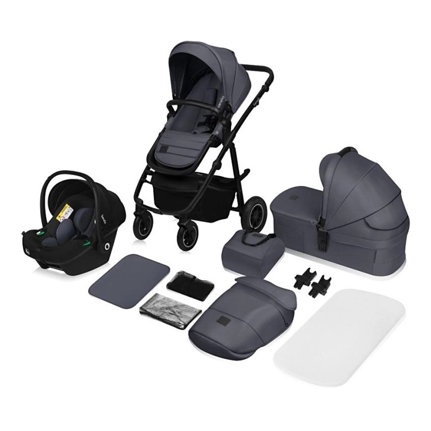 Lionelo - Комбинирана бебешка количка 3 в 1 AMBER PLUS Сив графит