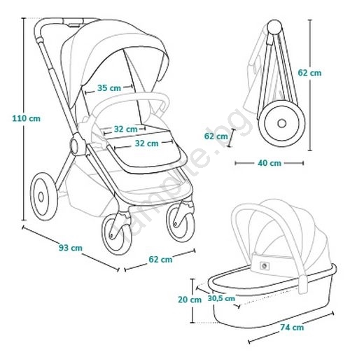 • Кош с наклон 3° обратно на посоката на движение за предотвратяване на рефлукс, мемори адаптери, вътрешен и външен джоб, сгъване напълно плоско.