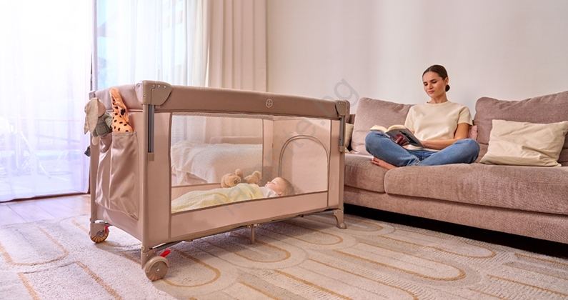 • Сгъваема пътническа кошара, която може да се използва и като бебешки манеж.