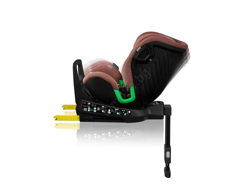 • Този модел може да се монтира както по посоката на движение, така и обратно с помощта на системата ISOFIX и стабилизиращ крак.
