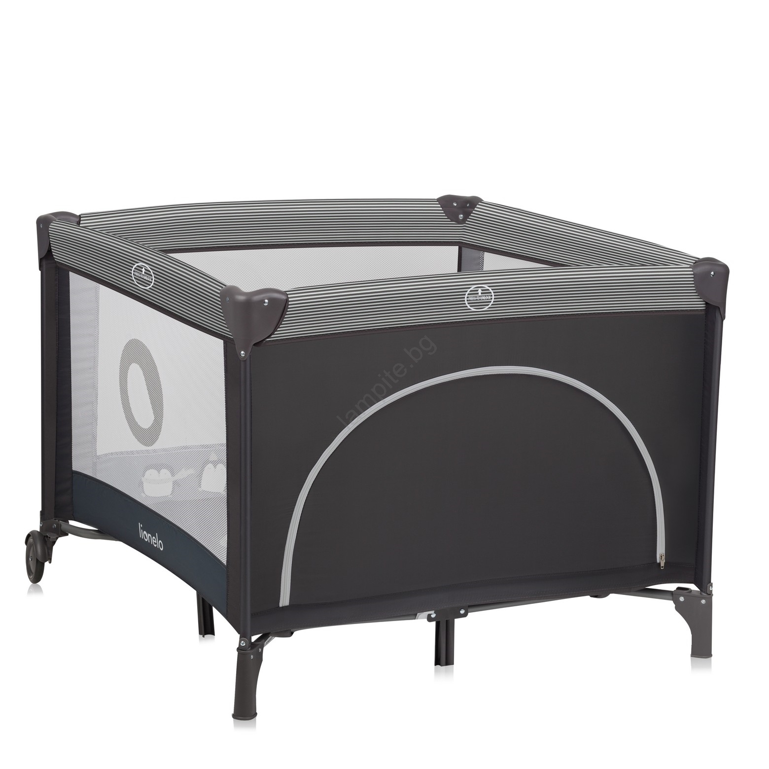 • Мрежестите странични панели не само осигуряват постоянна циркулация на въздуха, но и отлична видимост - както за родителите, така и за детето.