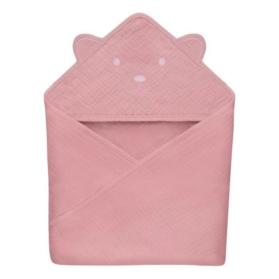 Lionelo - Детска муселинова хавлия с качулка, бебешко розово