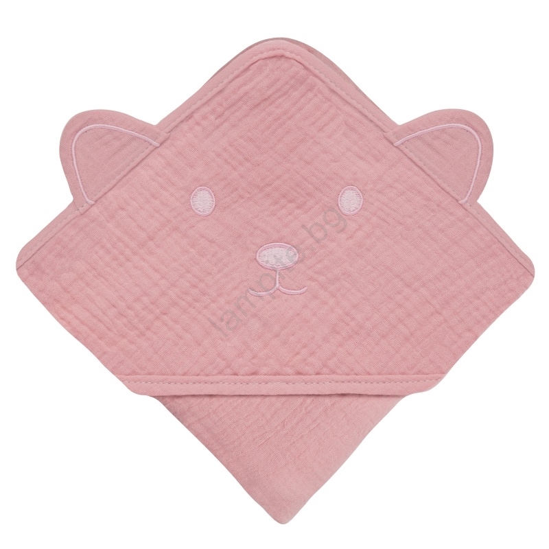 Lionelo - Детска муселинова хавлия с качулка Pink Baby