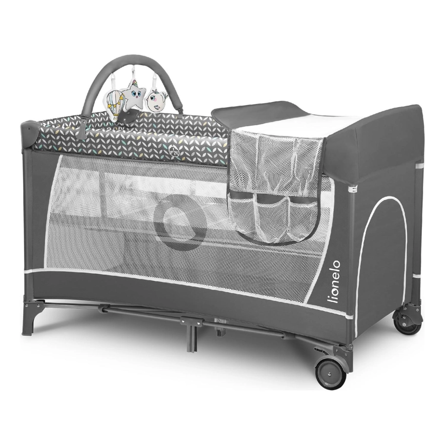 Lionelo - Портативна кошара FLOWER, сив в скандинавски стил