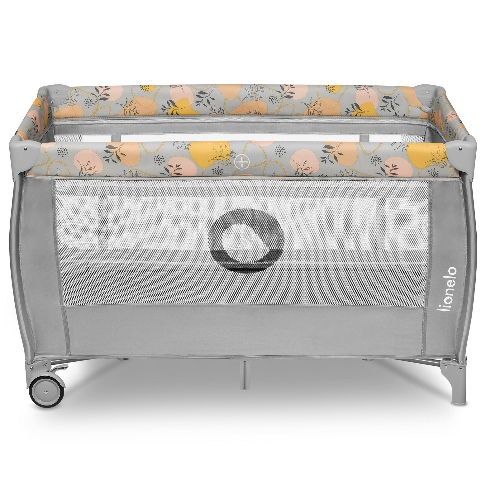 • 2 колелца със спирачка улесняват преместването на креватчето.