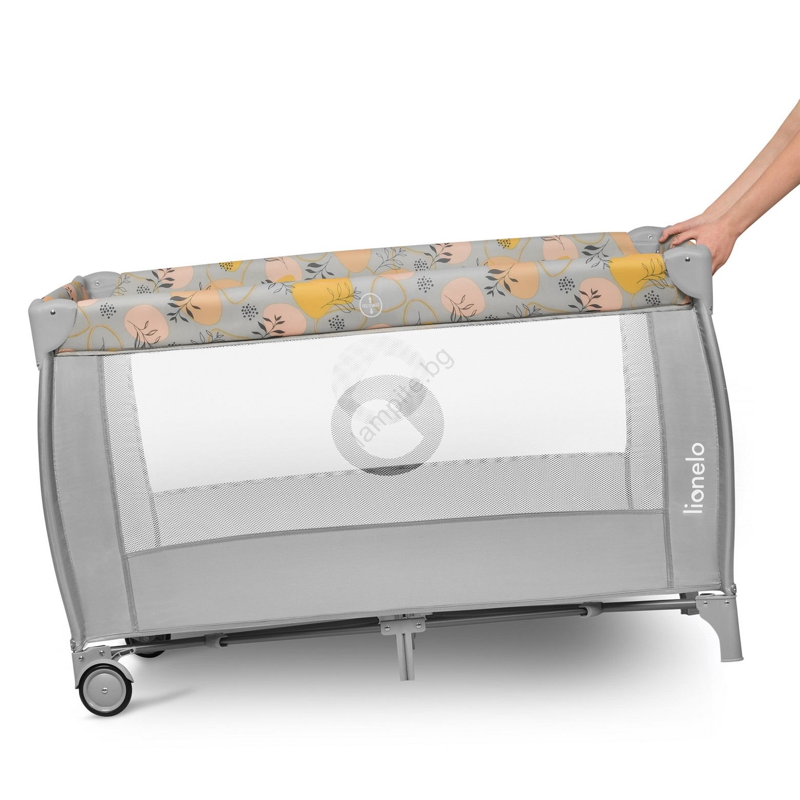 • Мрежестите странични стени позволяват да поддържате визуален контакт с детето и осигуряват оптимална вентилация.