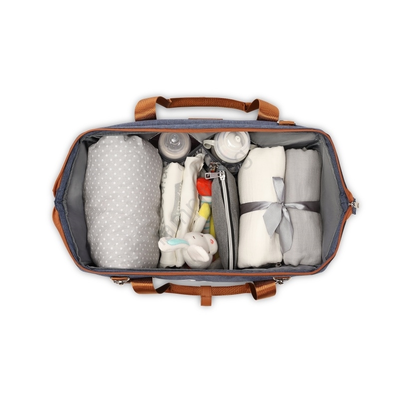 • Вътрешното пространство е оборудвано с: 1 голям джоб с цип, 1 голям джоб за майчини принадлежности, 2 джоба за шишета.