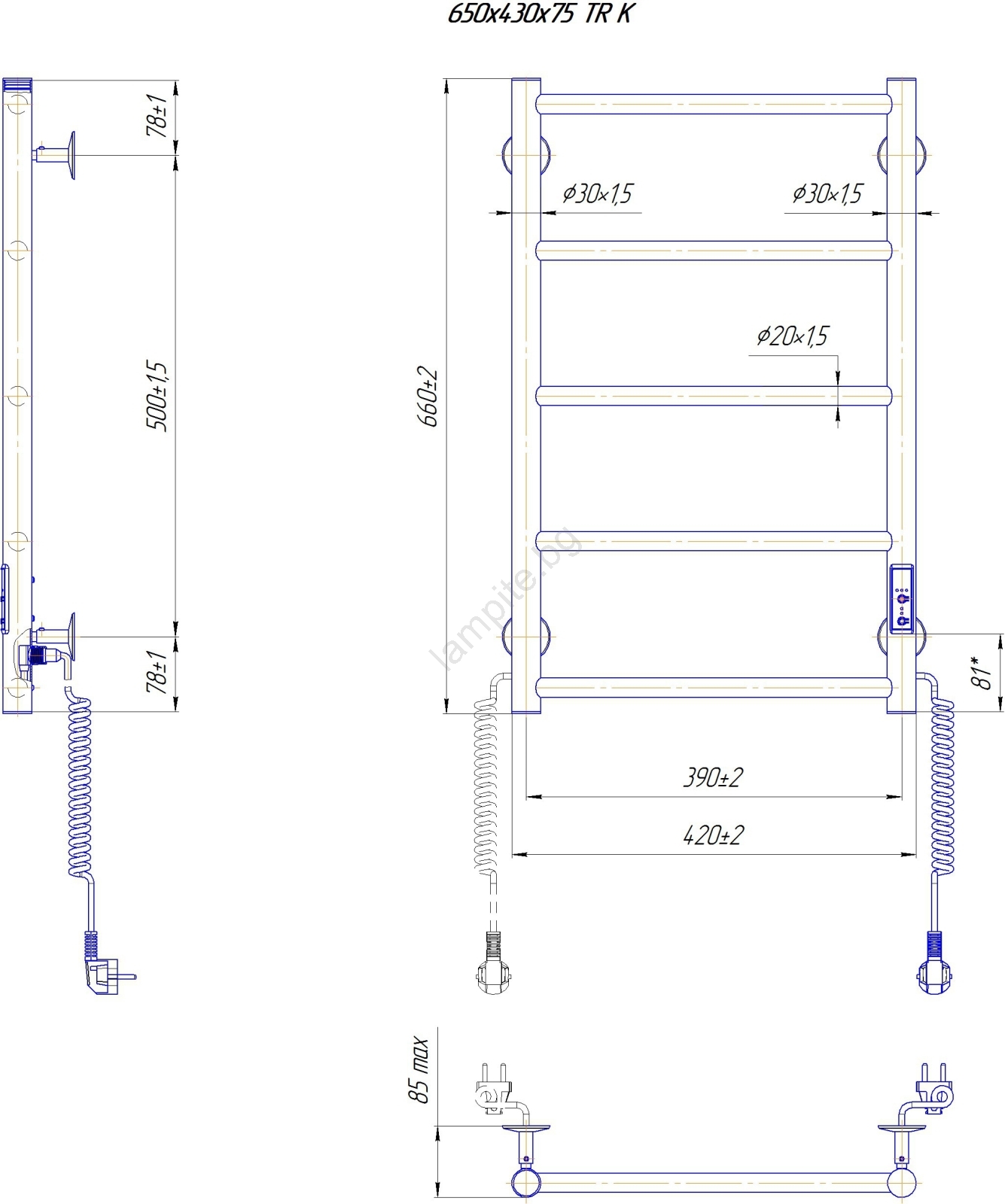 Лира за баня CLASSIC 65W/230V 65x43 см неръждаема стомана/бяла дясна