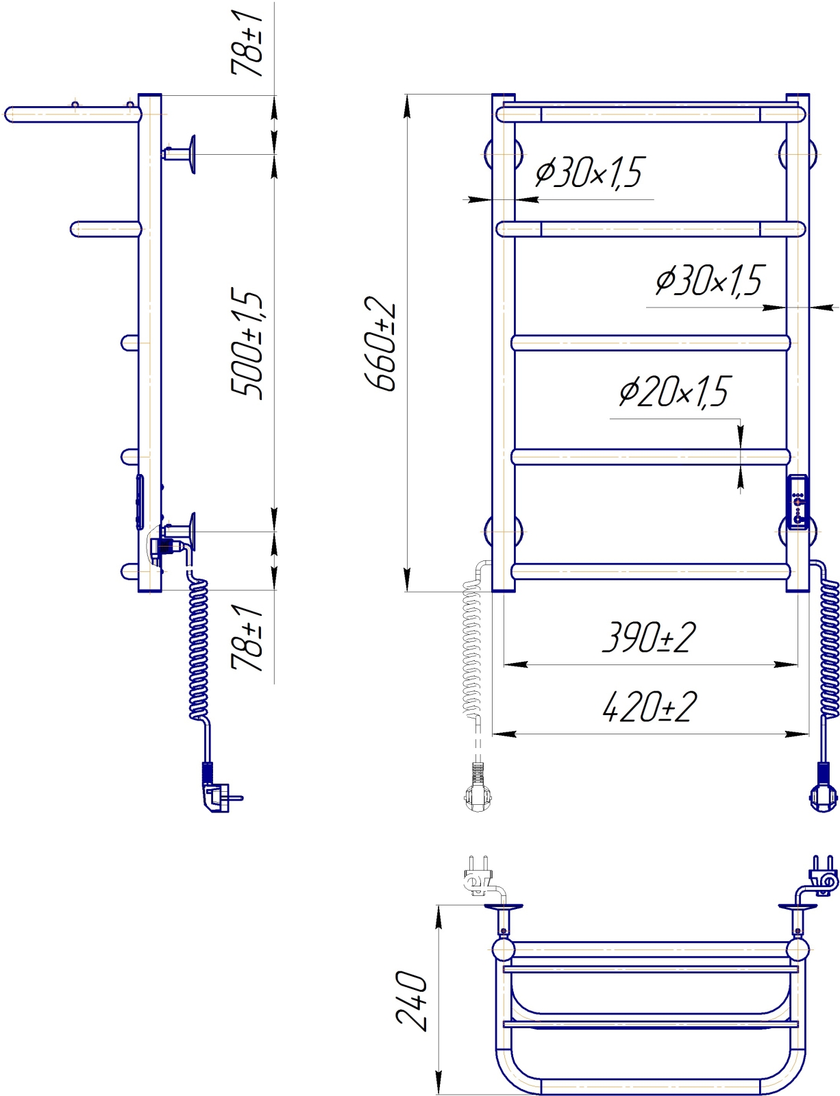 Електрическа лира за баня HOTEL 75W/230V 66x42 cm неръждаема стомана/бяла, дясна