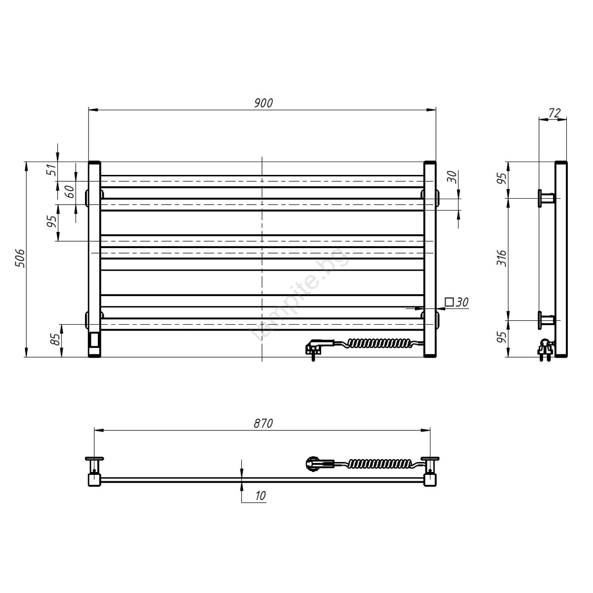 Банен сушилник за кърпи с термостат AVANGARD 316W/230V, 50,6 cm, IP44, черен, десен, с квадратни профили