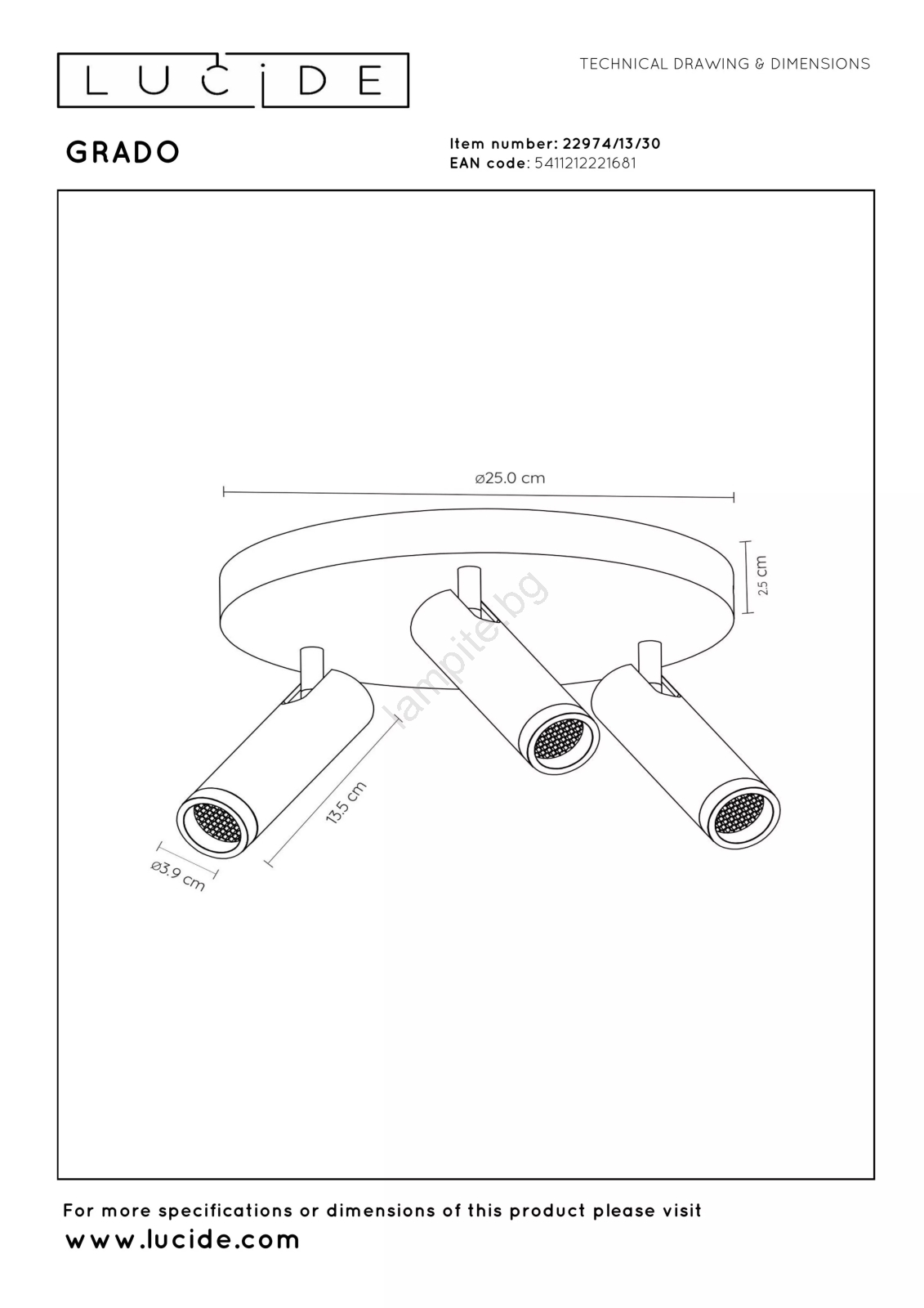 Lucide 22974/13/30 - Точково осветително тяло GRADO 3xGU10/40W/230V черно