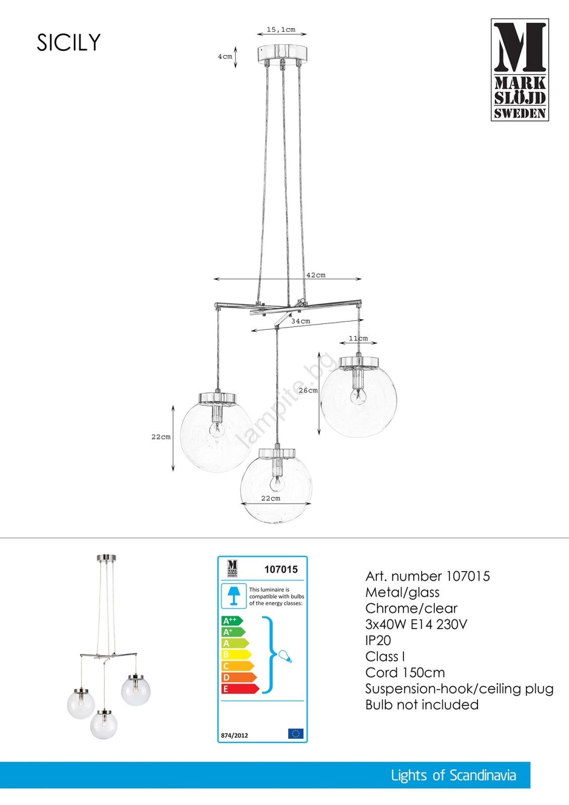 Markslöjd 107015 - Полилей на въже SICILY 3xE14/40W/230V