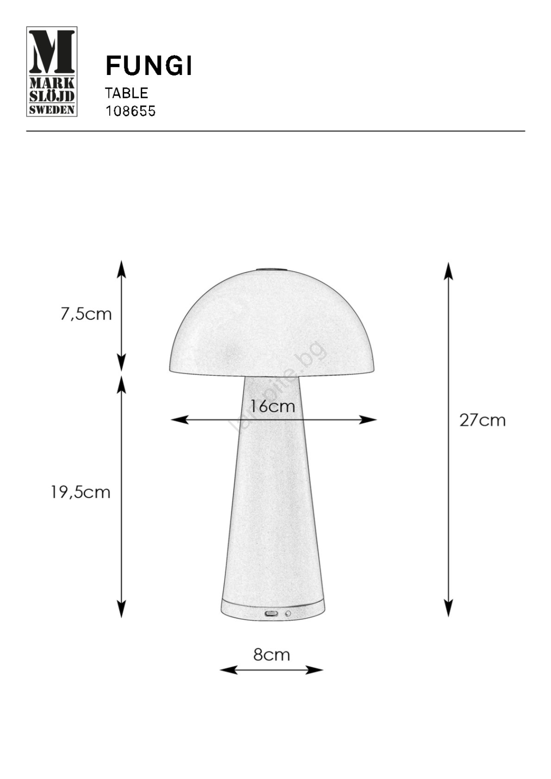 • Markslöjd 108656 - LED Димируем rechargeable лампа FUNGI LED/1,5W/5V IP44 бял