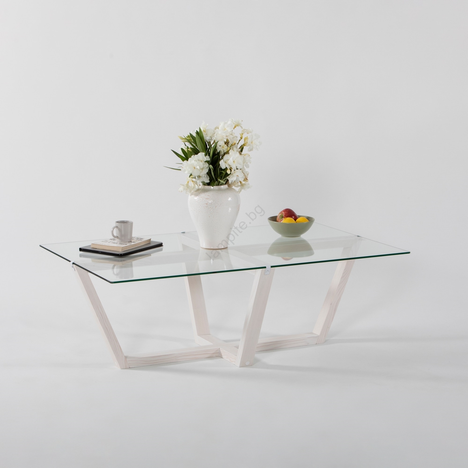 • Изработена е от борова дървесина, а плотът е от закалено стъкло