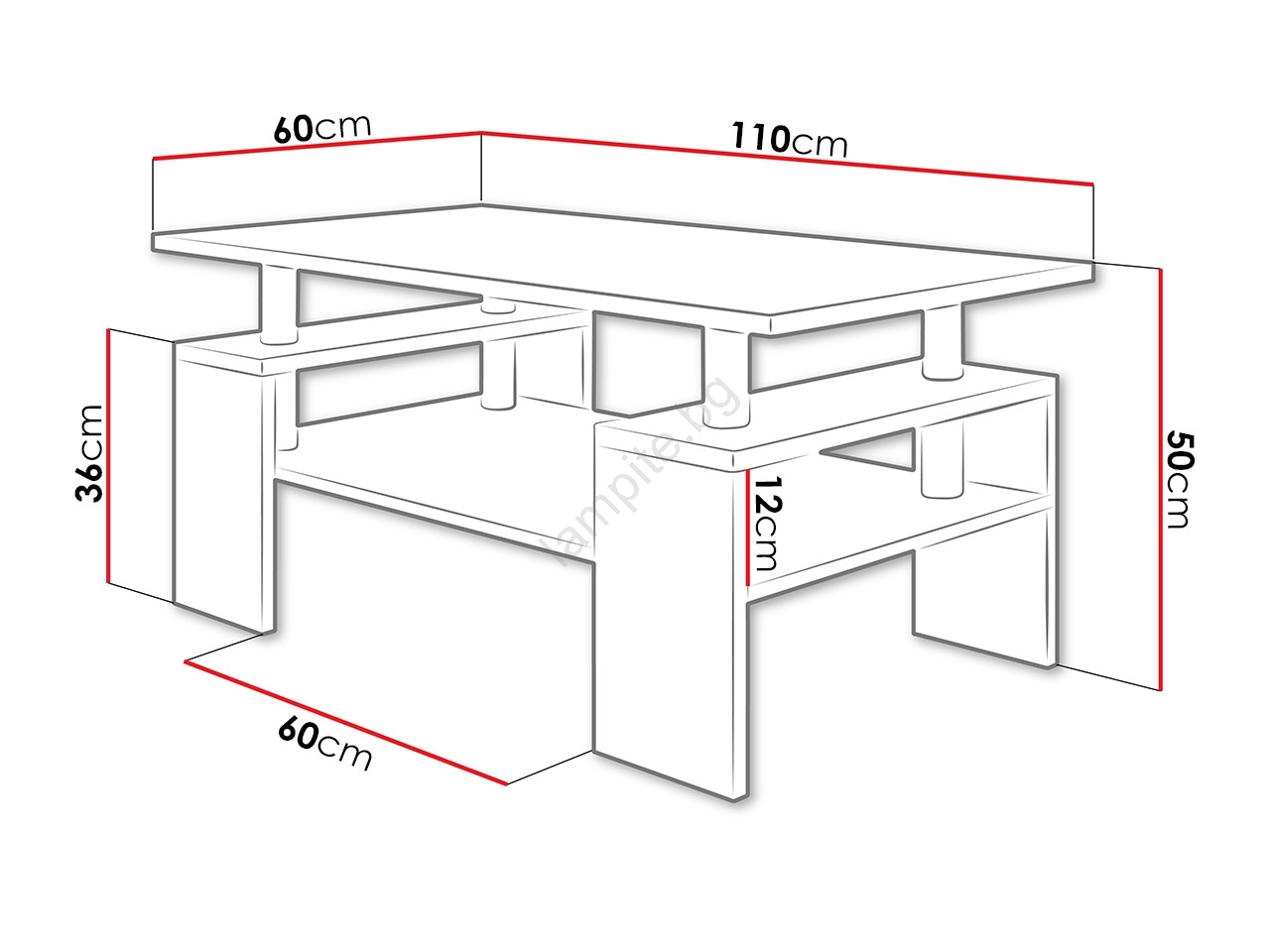 • Изработена от ламинирана плоскост с дебелина 22 мм (крака и горна част) и 16 мм (рафтове).