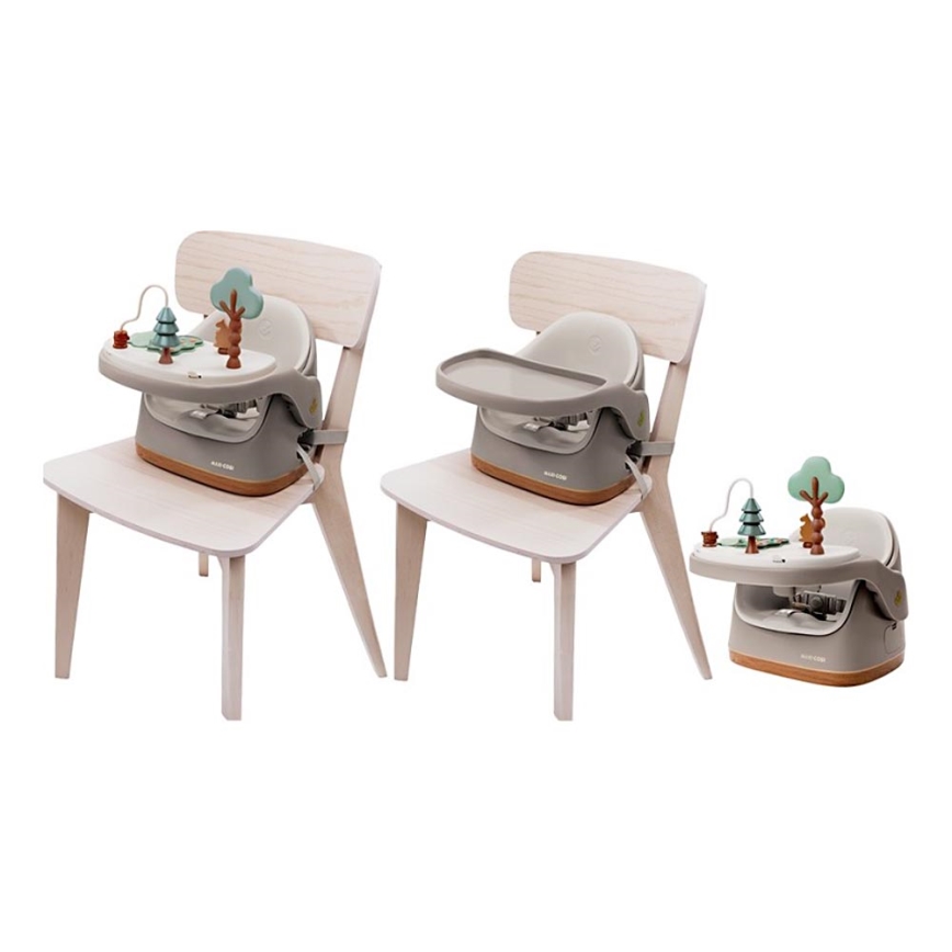 • Благодарение на практичната конструкция може да се използва като самостоятелно столче, като повдигаща седалка (бустер) за обикновен стол или като игрово място с приложена игрова табла и аксесоари.