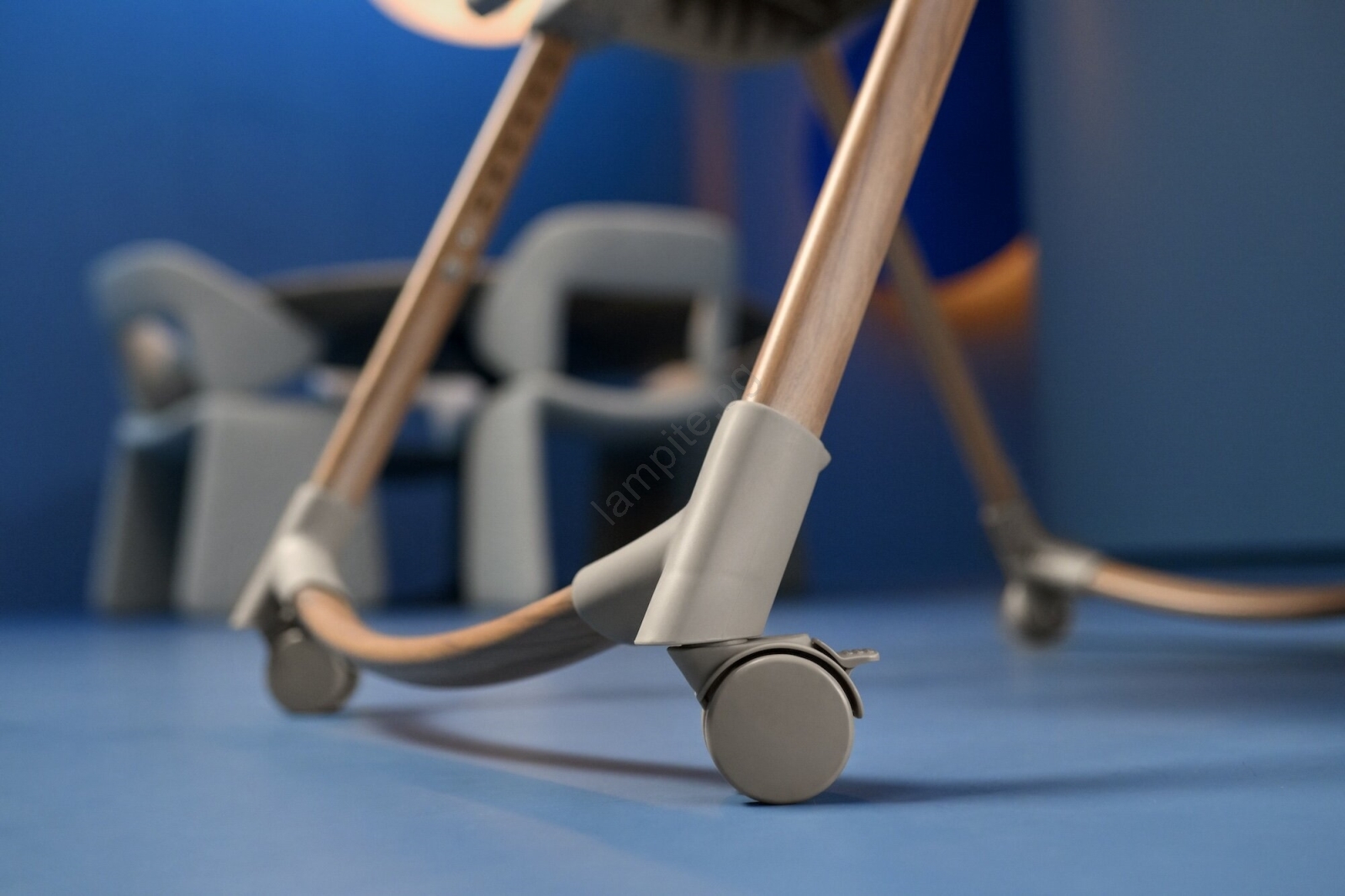 • Четири колела на предните крака с възможност за заключване улесняват придвижването на стола.