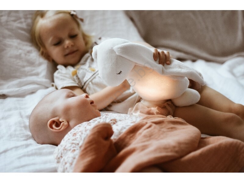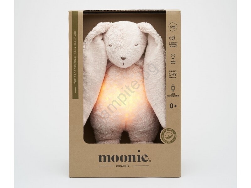 • Moonie заспиване под формата на сладко зайче с нощна лампа и релаксиращи звуци помага на бебето да заспи по-лесно.