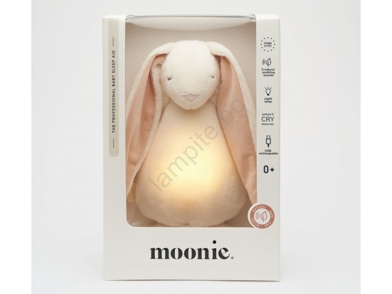 • Moonie заспиване под формата на сладко зайче с нощна лампа и релаксиращи звуци помага на бебето да заспи по-лесно.