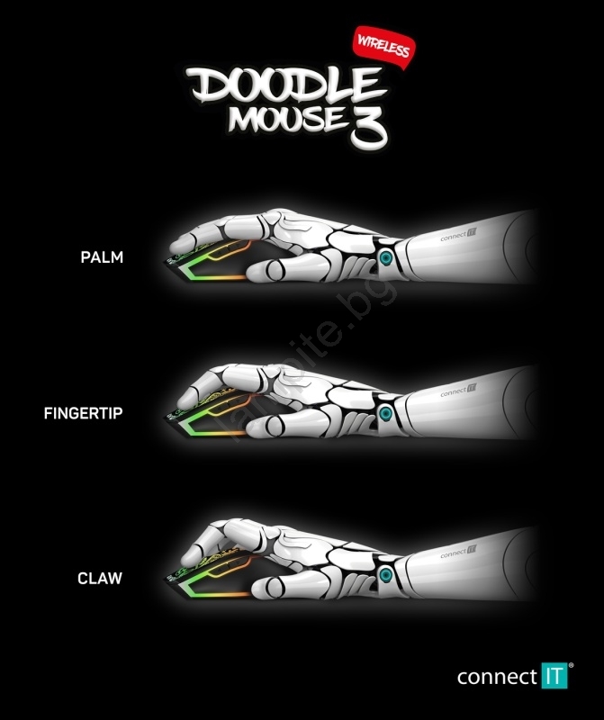• Съдържание на опаковката: мишка, USB мини приемник, заряден кабел USB-A -> Micro USB (150 см), промо стикер "DOODLE 3" и безплатен софтуер за изтегляне.