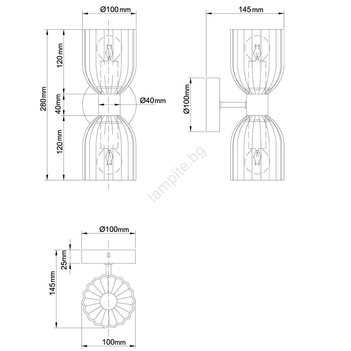 • Настенна лампа PIEGA 2xE14/10W/230V месинг/димчато черно