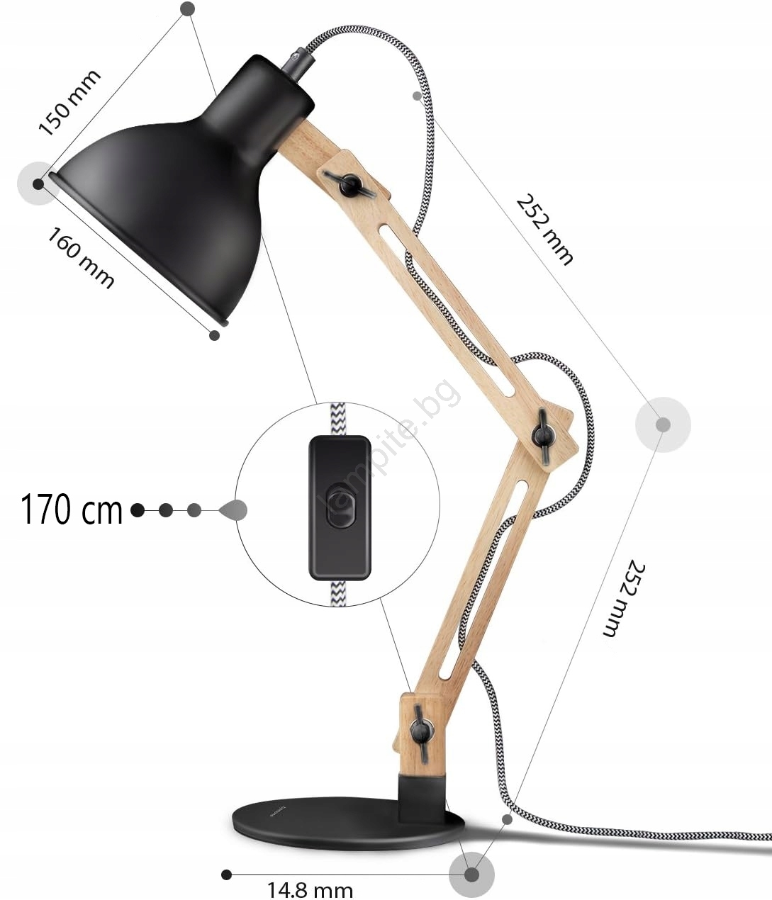 • Настолна лампа 1xE27/40W/230V черна