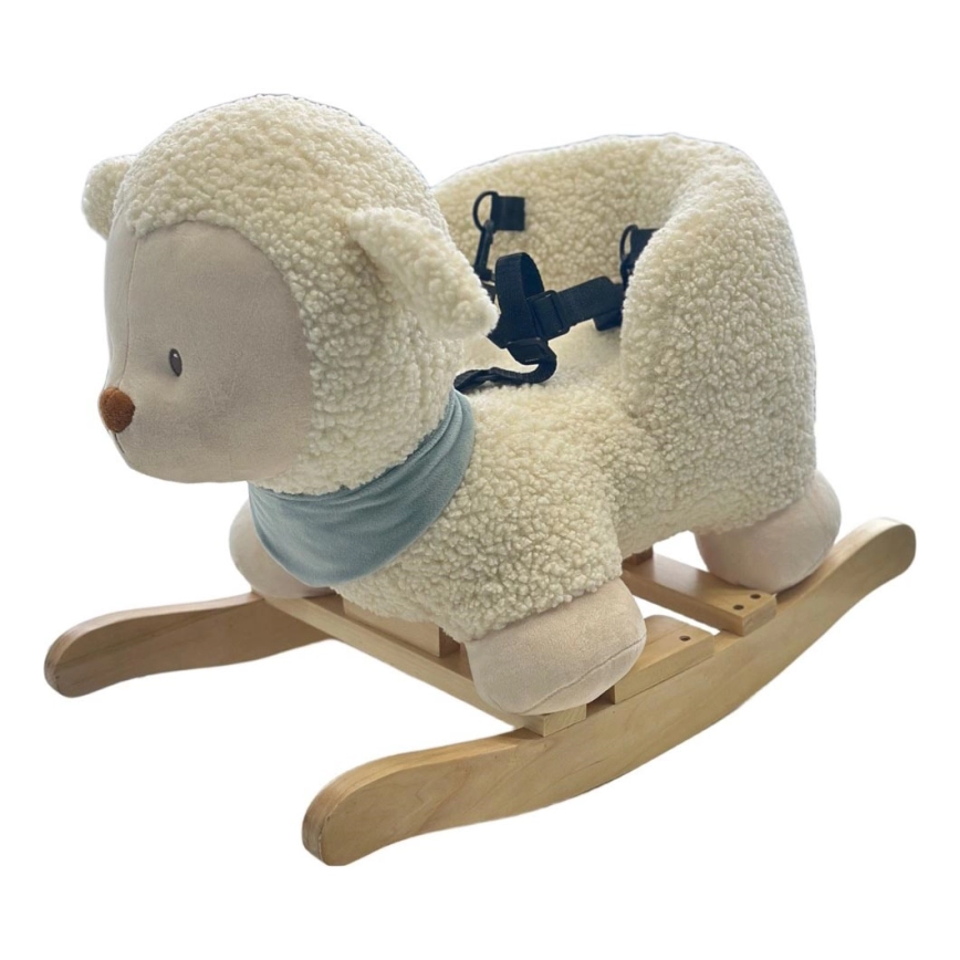 • Красива плюшена люлееща се овца с дървена основа и дръжки, която приканва към люлеене и гушкане.