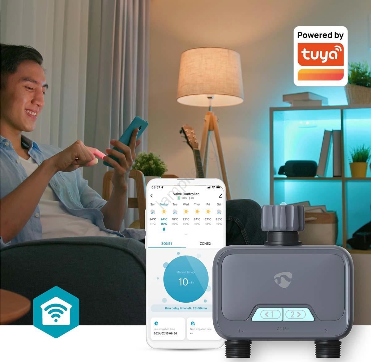 • Идеален за управление и наблюдение на напояването в две различни зони на вашата градина.