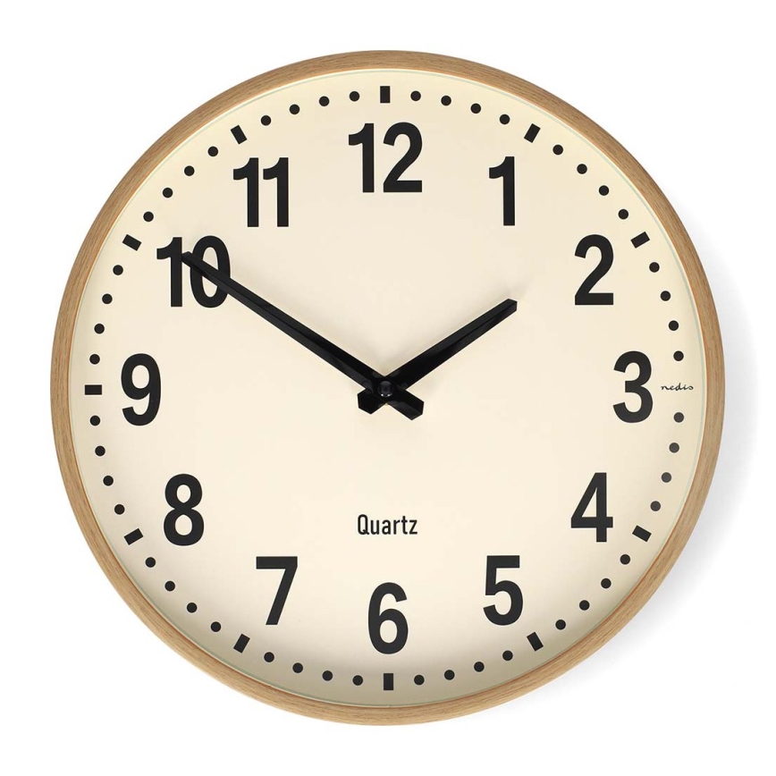 Дървен стенен часовник, диаметър 30,8 см, захранване 1 x AA
