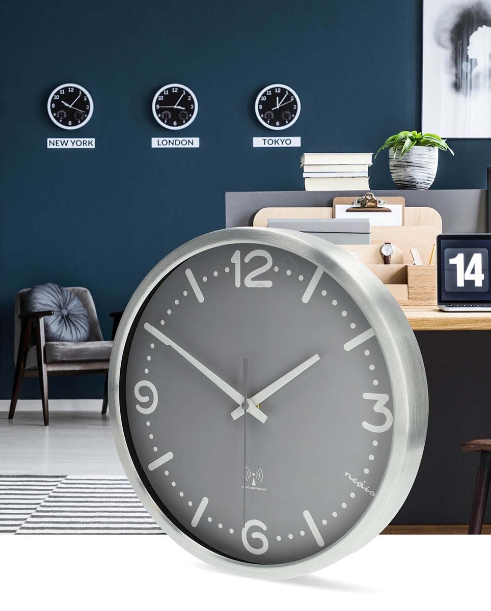 Стенен часовник Ø 30,5 см 1xAA матов хром/сив