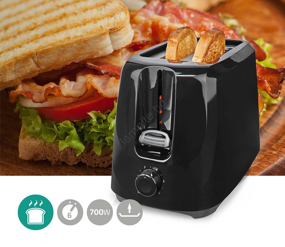 Тостер с 2 отвора 700W/230V черен