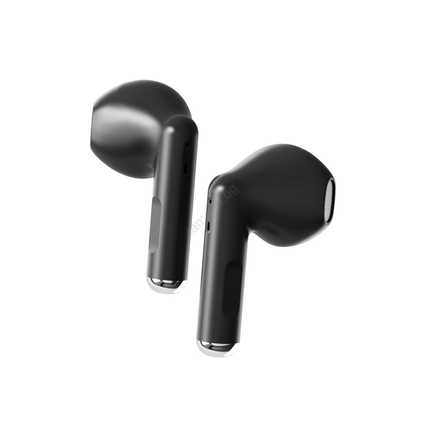 • Съдържание на опаковката: безжични слушалки, заряден кейс, USB-C заряден кабел, сменяеми тапи.