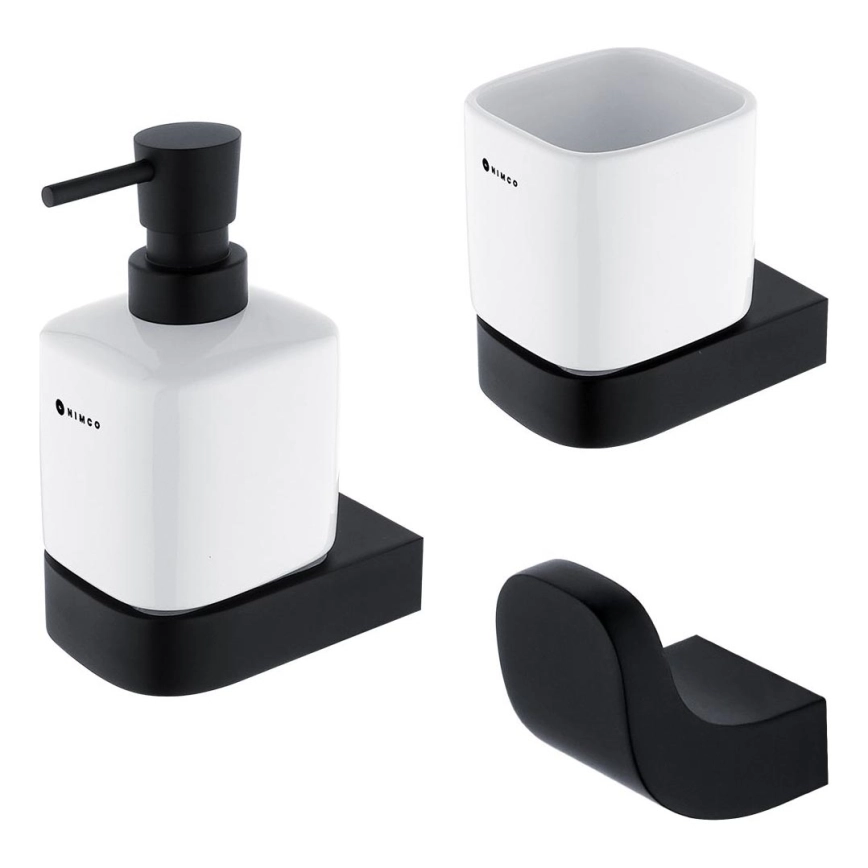 NIMCO NKC комплект-31K-T-90 - Стенен дозатор за сапун, поставка за четки за зъби и закачалка NIKAU 320 мм бял/матов черен