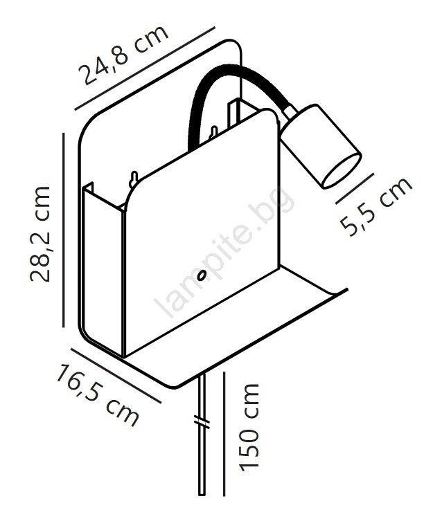 • Nordlux - Стенно насочващо осветително тяло с рафт и USB ROOMI 1xGU10/8W/230V черно