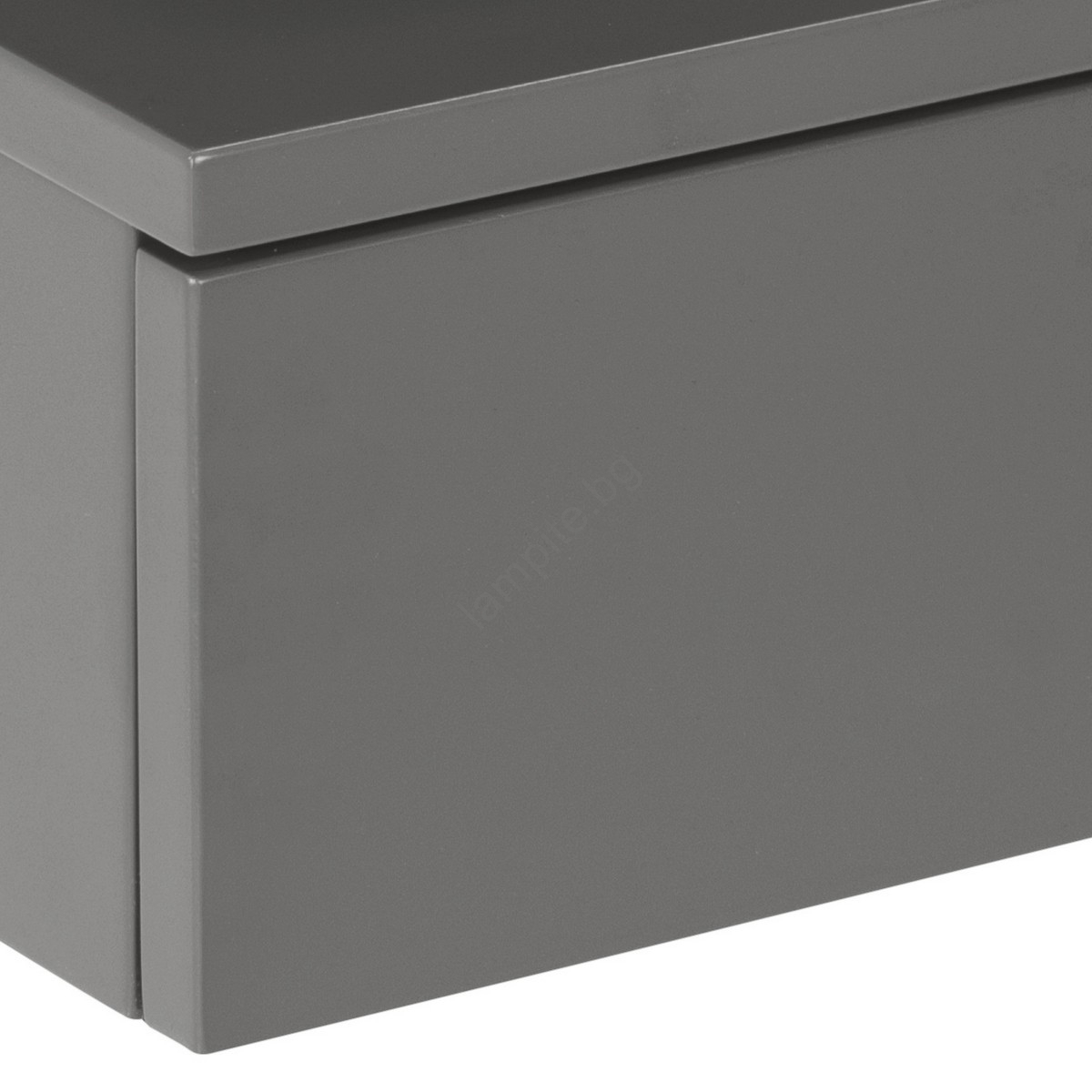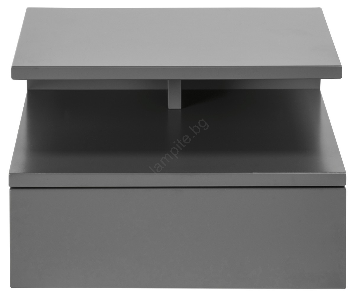 • Плот, рамка, чекмедже и рафт от сива MDF с UV лак, пълно изтегляне, отворено отделение и монтаж на стена.