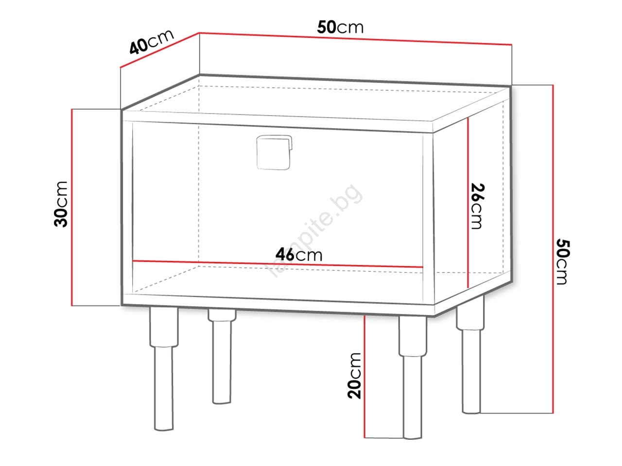 • Ноги: метал (височина 20 см) + пластмасови крачета.