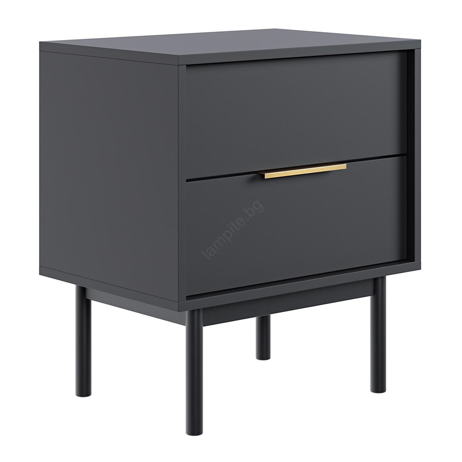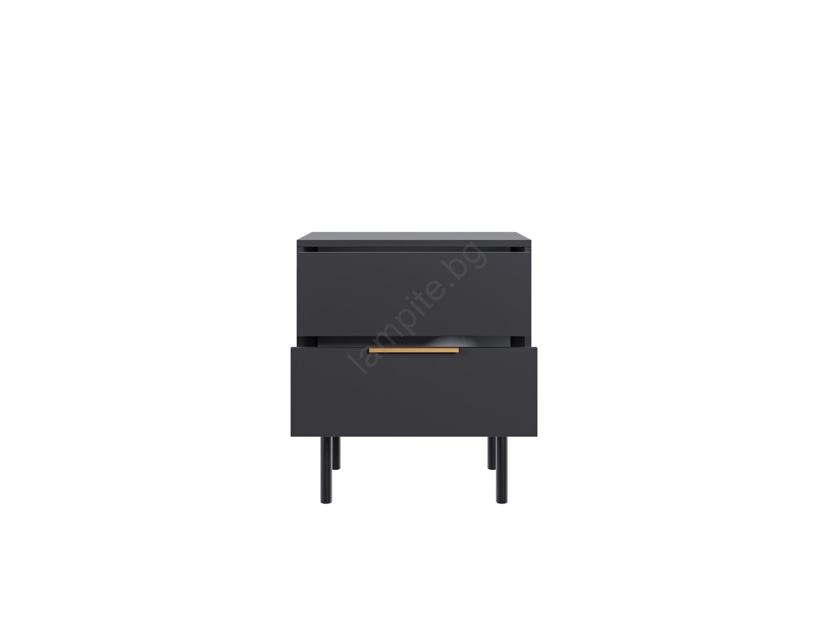 • Разполага с два чекмеджета, долното с дръжка и горното без дръжка за минималистичен и изчистен ефект.