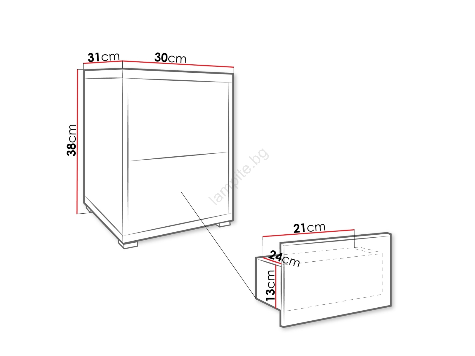 • В двата практични чекмеджета удобно приберете започнати книги, очила, телефон и други вещи, които искате да имате под ръка преди лягане.