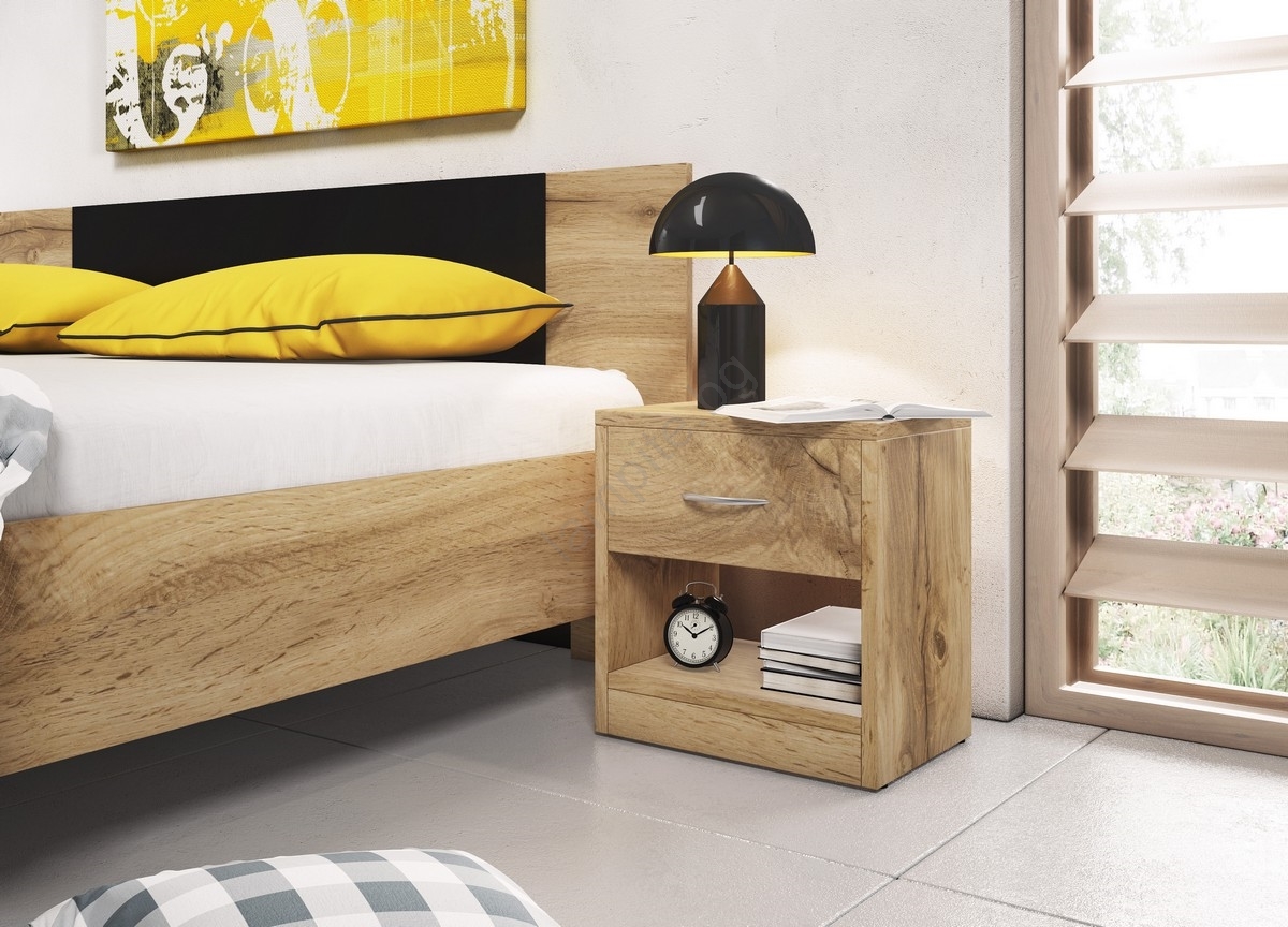 • Разполага с два чекмеджета: долното с дръжка и горното без дръжка за минималистичен и изчистен ефект.