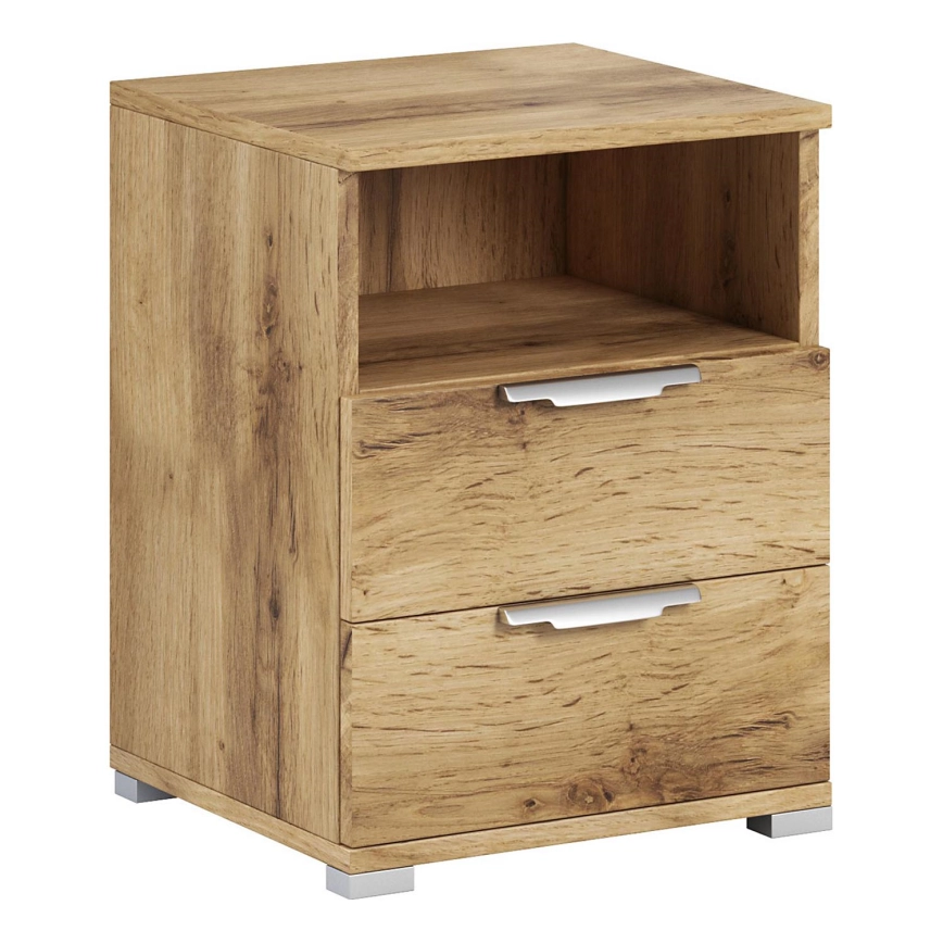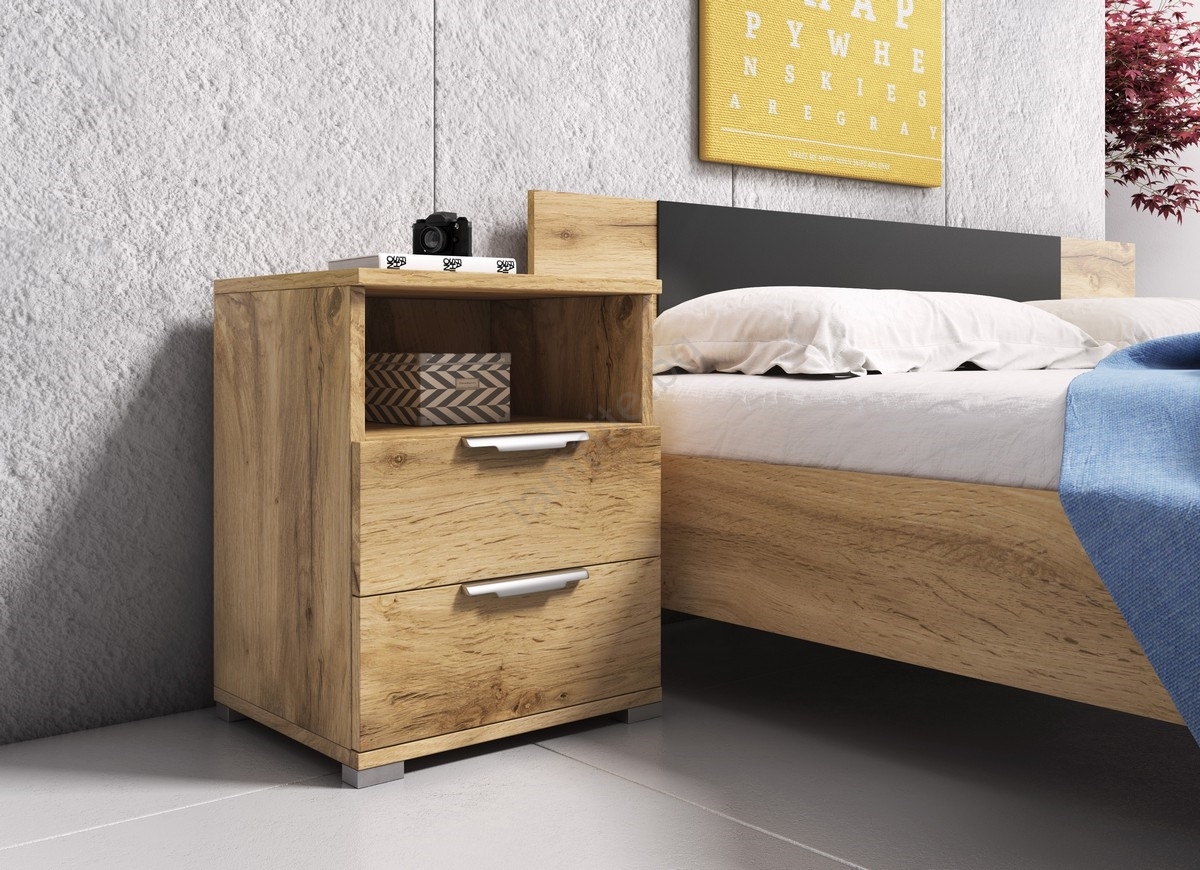 • Разполага с две чекмеджета, долното с дръжка и горното без дръжка, за минималистичен и изчистен ефект.
