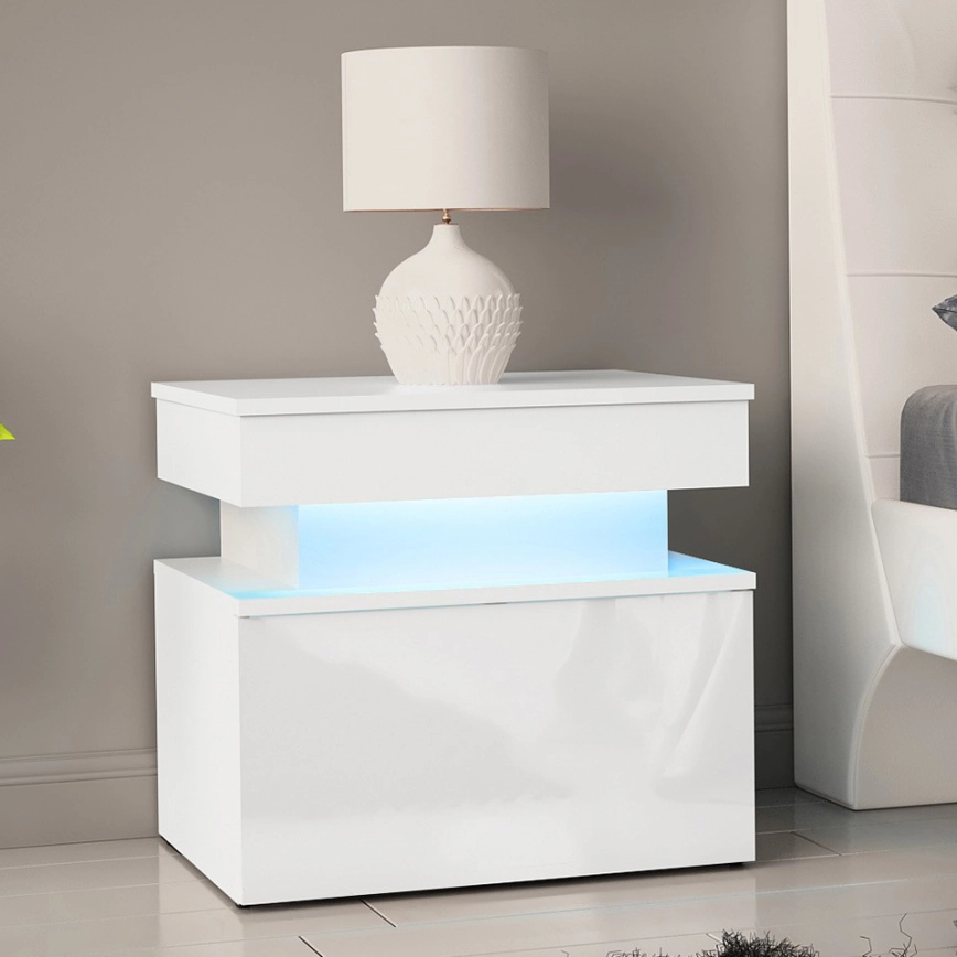 Нощно шкафче GLOSSA с LED осветление, 51x55 см, бяло/гланц