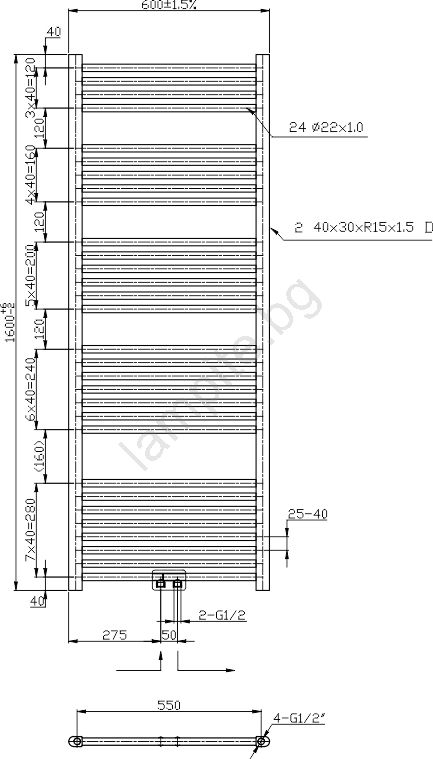 Novaservis - Банен радиатор тип лира 836W/230V 160x60 cm черен прав