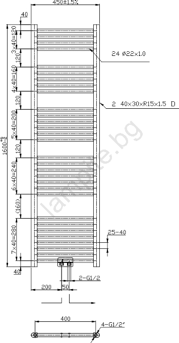 Novaservis - Банен радиатор тип стълба 648W/230V 160x45 cm черен прав