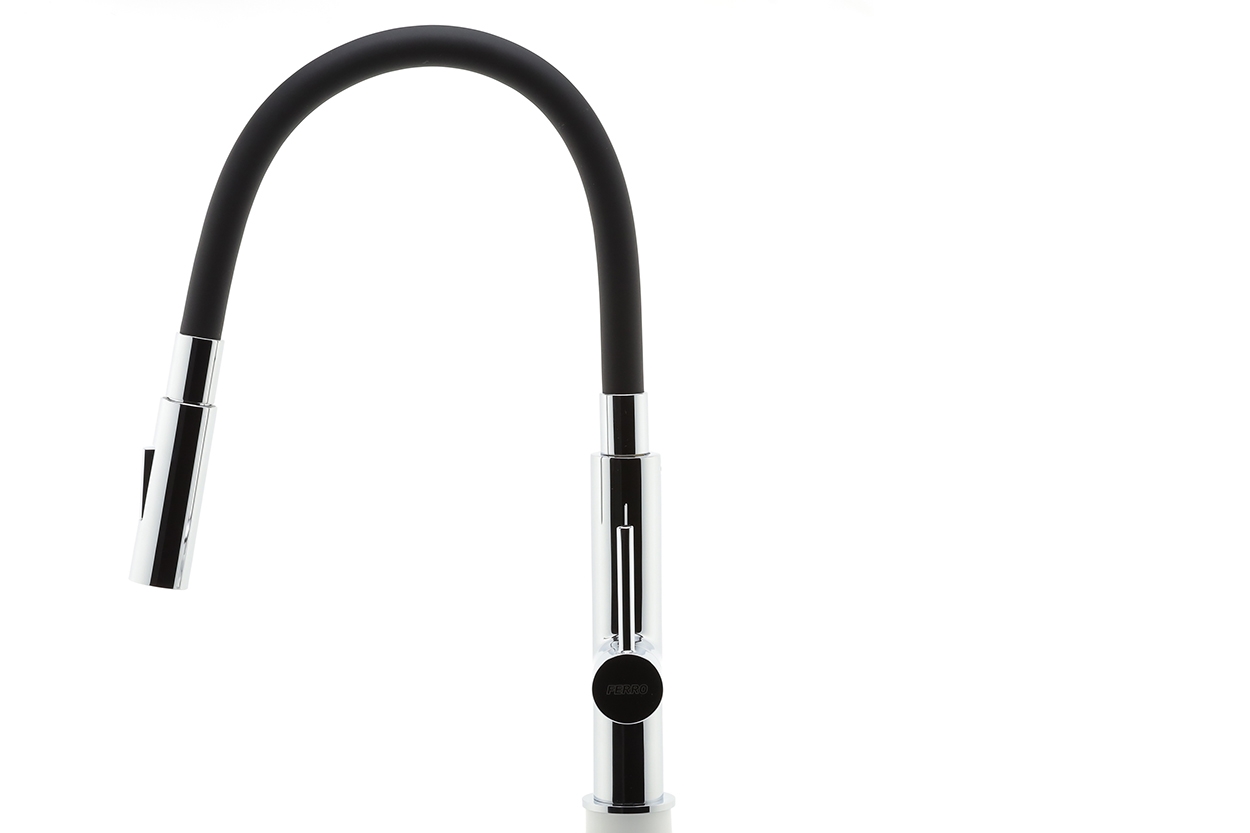 FERRO - Кран за мивка с гъвкаво рамо лъскав хром/черен