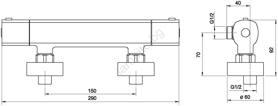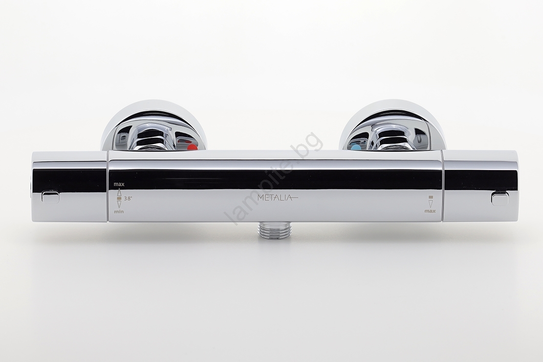 • Термостат от лявата страна, управление на водния поток от дясната страна.