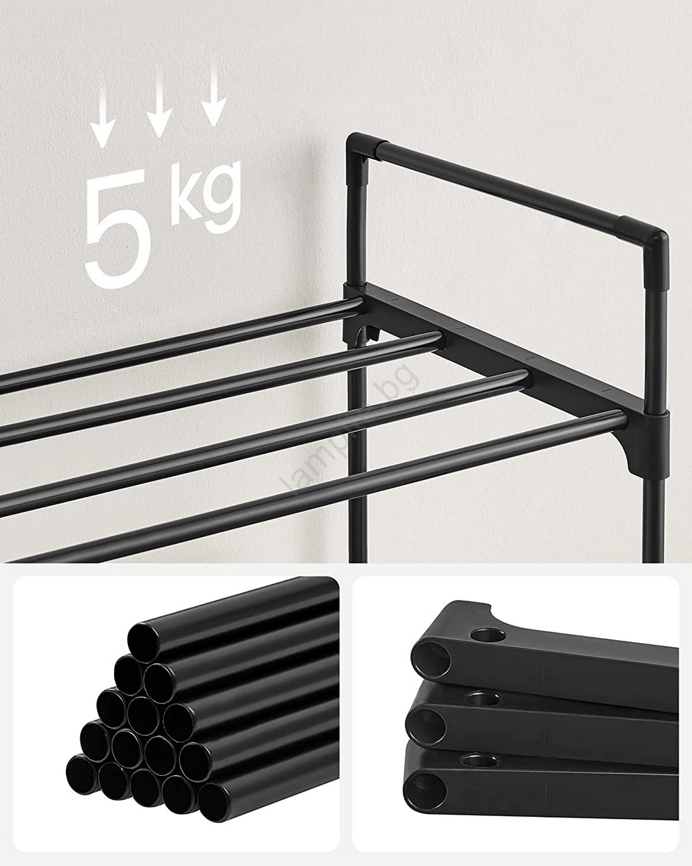 • Всяко ниво носи до 5 kg, което осигурява надеждна опора за вашите обувки.